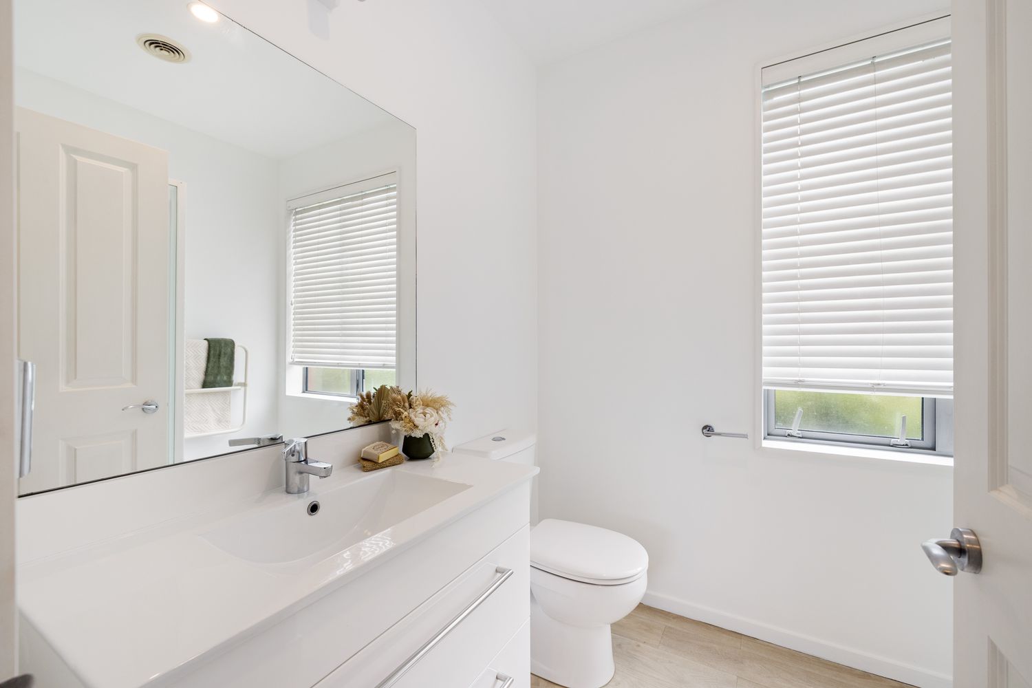 The primary bedroom sits quietly away from the living area and includes an ensuite.