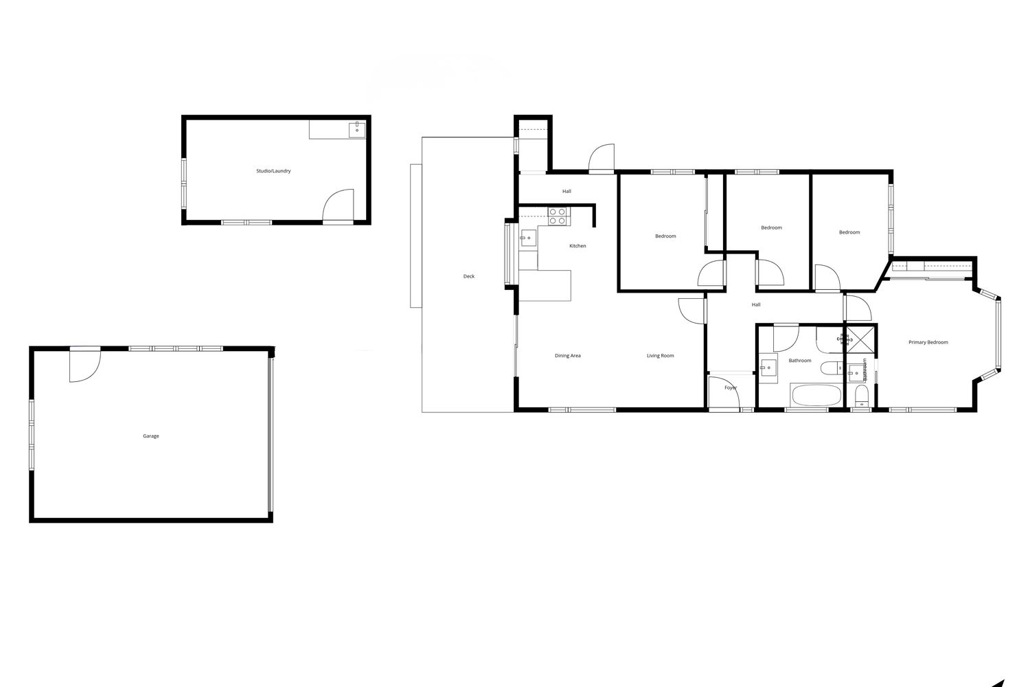 There’s also a detached studio with plumbing, creating a flexible space for a home business, gym, or work-from-home setup.