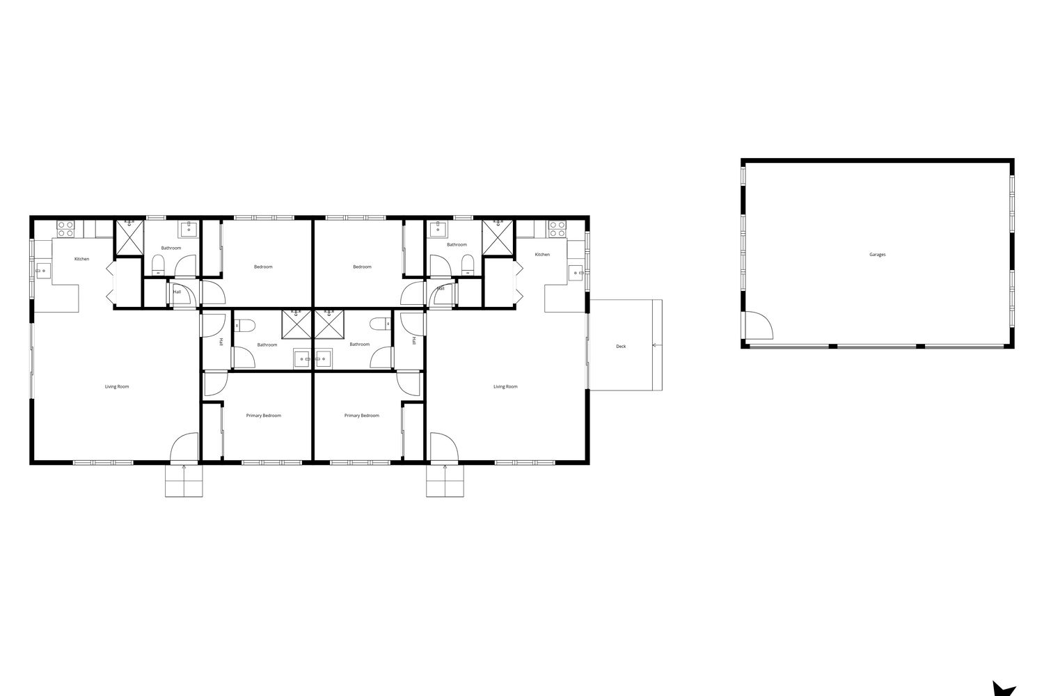 – Two two-bedroom, two-bathroom units